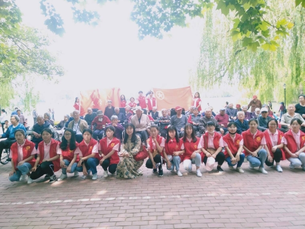 当志愿者们走进爱晚红枫养老院,看到慈祥的爷爷奶奶们,内心不禁涌起一股亲切感。他们就像照顾自己的爷爷奶奶一样,陪伴老人们来到达活泉公园游园。途中,志愿者们一边小心地推着爷爷奶奶游览,一边关切地询问他们的身体状况。有感于公园美丽的风景,有的人还即兴做起诗来。大家有说有笑,其乐融融。虽然爷爷奶奶们年事已高,行动不便,但在与同学们的交谈中仿佛回到了自己的青春年华,一张张经过岁月打磨的脸上洋溢着幸福的笑容。
