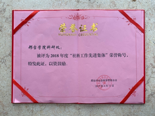 4月12日,邢台市社科联组织召开邢台市社科工作会议,市属学会、高校科研处、省市科普基地近50名代表参加了会议。此次会议我校科研处被评为2018年度社科工作先进集体,并作典型发言。