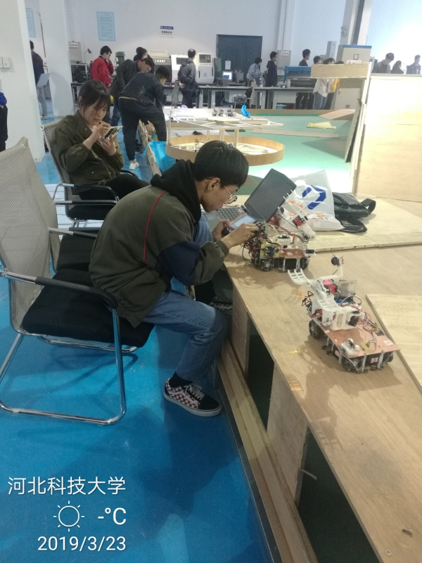 比赛分为“S”形赛道常规赛(直道)、“8”字形赛道常规赛(双8)、S环形赛道挑战赛(环道)、智能物料搬运机器人(机器人)两类四项分赛,我校参赛队参加了“机器人”项目竞赛。比赛中,参赛队伍需要根据赛事规则自主设计制作一款能执行物料搬运任务的智能机器人,使其能够在规定场地内自主行走,并通过扫描二维码领取任务,自主寻找、识别物料,按顺序搬运至指定地点,并按要求的位置和方向摆放。