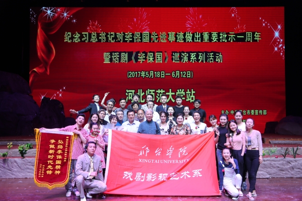 戏剧影视艺术系秉承“课堂舞台化,舞台社会化”的教学理念创新教学模式,实现了课堂上教与学向舞台上导与演的转化;学生的人文艺术素质向开拓创新精神的转化;学生的专业应用能力向社会服务能力的转化。原创话剧《李保国》于2016年8月,荣获邢台市第二届文艺精品扶植奖,并入选河北省文化厅主办的“我们的旗帜”——河北省庆祝建党95周年优秀剧目展演活动。2017年5月18日至6月12日,《李保国》剧组,深入到岗底村、正定中学、河北师大、围场县、燕山大学等地,进行了巡演,在社会上引起良好反响。