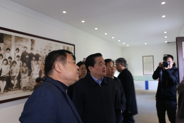 图2-省人大常委会党组书记、常务副主任范照兵一行在参观我校校史馆,