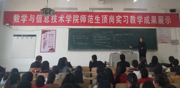 作为实践教学的一个重要环节,顶岗实习对促进师范生专业化技能的提升,培养学生从师任教的基本素质起到了不可或缺的作用。为检验顶岗实习效果、促进实践教学,数学与信息技术学院在每年的上半年组织顶岗实习教学成果展示活动,产生了良好的效果。