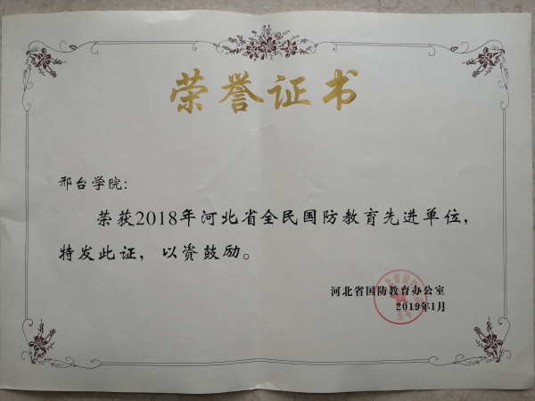 1. 河北省全民国防教育先进单位