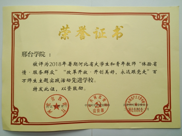 4. 2018年暑期河北省大学生和青年教师“体验省情·服务群众”“改革开放·开创美好,永远跟党走”百万师生主题实践活动先进学校