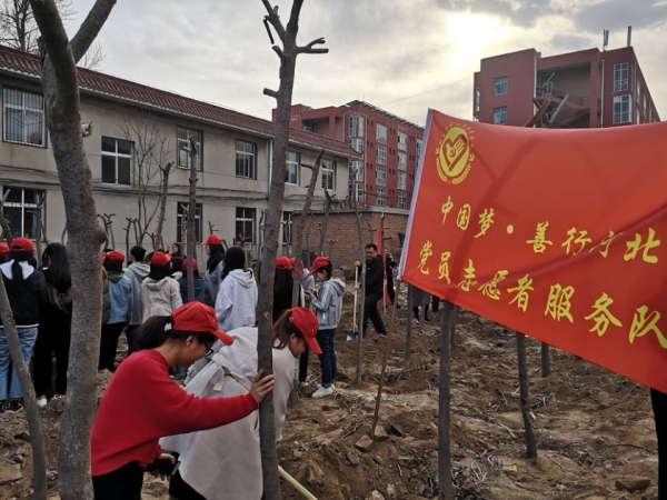 2019年3月11日下午4点,初等教育学院师生党员、入党积极分子近百人在校园内开展义务植树活动。活动现场,在党委书记张成起带领下,大家挥锹铲土,干劲十足,种下一棵棵幼树,尽管大家浑身是汗、满脚是土,但看着成片植树成果,倍感劳动后的光荣和喜悦。