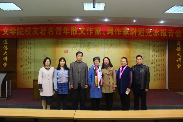 报告会以尉迟克冰作词、汪正正演唱的《脚步》为开场。随后,她向大家强调了真正意义上的写作者都是善良的、慈悲的,而悲悯之心引导人向上、向善、向美。然后,她以冰心散文、《唐山大地震》以及自己原创的散文《信任》、《豁口》、《过年》、歌词作品《脚步》为例,毫不保留地、无私地与大家分享了她的创作经验和体会。她强调艺术创作要有强烈的创作欲望、兴趣和激情,创作时最难的是找准切入点,要有创新、独一无二,内容要能够引起大家的共鸣。最后,她希望师弟师妹们倍加珍惜大学时光,多读书、读经典书、打好文字基础。同时,她还鼓励同学们在校期间要敢于挑战自我,多练笔写作,一定要有属于自己的原创作品问世,毕业找工作时能拿出作品证明自己的能力。