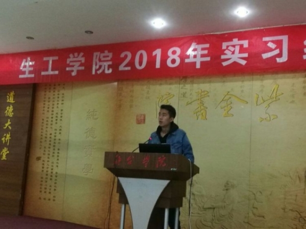 2018年10月10日晚,图书馆报告厅,主席台正上方悬挂的“生工学院2018年实习经验交流会”红色横幅格外醒目。选自各实习专业班级的学生代表轮番上台,或激情慷慨,或幽默诙谐,或深情款款,或细流娟娟,述说着实习中的辛苦、快乐、委屈、收获和感动,赢得台下师生阵阵掌声。