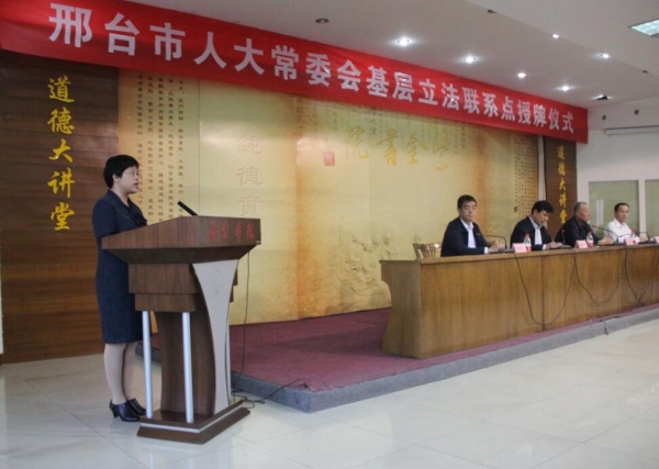2018年9月28日下午,邢台市人大常委会基层立法联系点授牌仪式在我校举行。市人大常委会主任魏吉平、副主任戎志学、秘书长陈同计,邢台学院副校长朱金亮、党委常委徐惠敏,各基层立法联系点代表等出席仪式。会议由市人大常委会副主任戎志学主持。