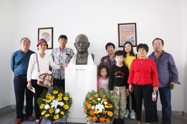 座谈会后,参观了旧址校史馆,孟宪褆的后人向孟宪褆雕像敬献了花篮。