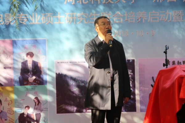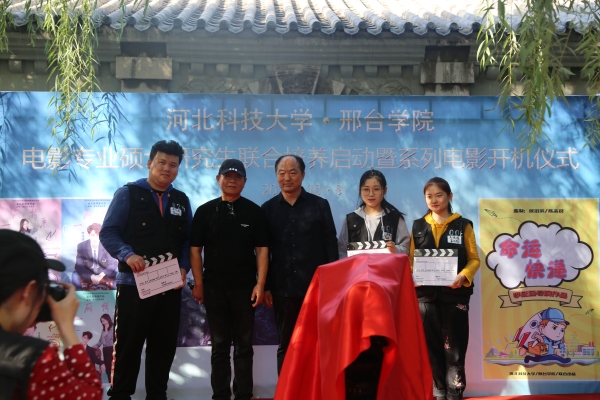 2018年10月9日,在邢台学院百年校史的四师旧址,邢台学院戏剧影视艺术系与河北科技大学影视学院联合培养电影专业硕士研究生项目正式启动,在校研究生毕业作品系列电影《命运快递》、《青春起跑线》、《营救紫金山》、《一厢情愿》同时举办了电影开机仪式。邢台学院客座教授、著名表演艺术家郭法曾老师,邢台学院副校长蔡振禹,河北科技大学影视学院院长侯沿滨,邢台学院相关职能部门领导、师生代表参加了本次活动。仪式由候沿滨教授主持。