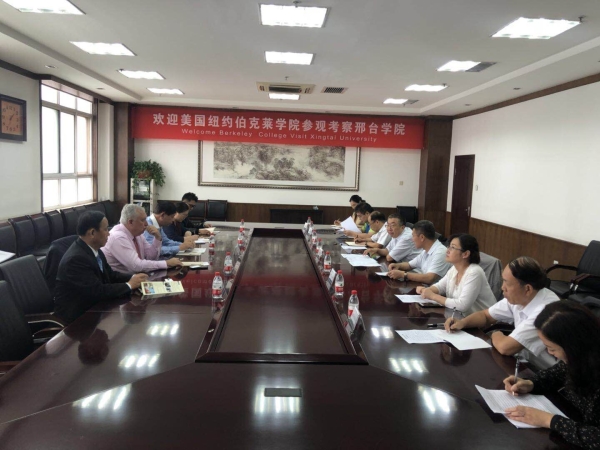 下午1:30,副校长蔡振禹、教务处处长武立民、经贸学院院长李庆波、会计学院院长郑玉梅、工管学院院长郝庆禄一同在主楼11楼会议室与Jose A Tavares一行进行了会谈。 蔡振禹副校长对Jose A Tavares一行表示热烈欢迎,介绍了我校的国际交流情况,期待与伯克莱学院可以在师生交流、学术科研合作等领域开展合作交流活动。 Jose A Tavares先生介绍了伯克莱学院的学校地位、专业特色,谈及参观邢台学院百年校史、体育馆之后的感受,对邢台学院体育馆表示称赞,期待与我校开展不同领域的合作。