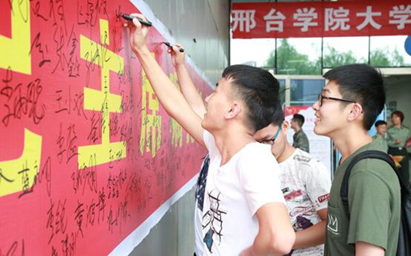 邢台市高校五名优秀大学生退役及现役军人进行了精彩宣讲,他们分别结合自己的从军经历,讲述了丰富多彩的军营生活和大学生到部队发展的优势,以及切身享受到的各项优惠政策。希望学弟学妹们珍惜身穿军装机会,到部队锻炼成才,丰富人生阅历。