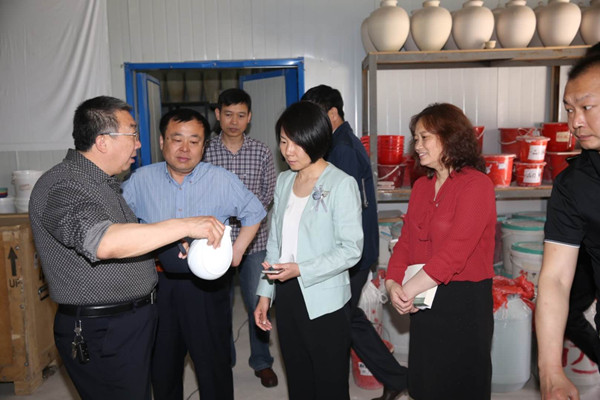宋敏一行首先参观了我校四师旧址和邢窑研究所,对学校厚重的文化历史和对邢白瓷的研究与创作给予了高度评价。