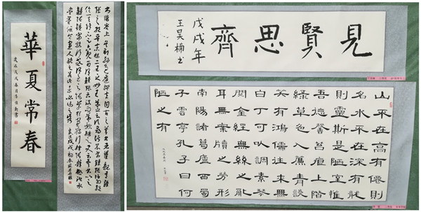 本次活动面向全校各院系共征集482份美术作品,获奖展出作品60份。其中包含剪纸类作品、书法类作品和绘画类作品,可谓形式多样,内容丰富,质量上乘。书法类作品中,李佳轩的“华夏长春”字体雄浑苍劲、笔力劲挺;苏丹彤的作品行笔奔放潇洒,字体如行云流水一般自由舒展;李媛的《陋室铭》布局严谨,字体遒媚劲健,笔意丰富。