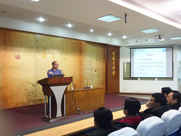 12月20日下午,石家庄铁道大学研究生院副院长、硕士生导师、材料科学专家张光磊教授受邀在图书馆报告厅为物理与电子工程学院200余名师生作了“职业能力为导向的研究生教育改革与实践”的专题报告。