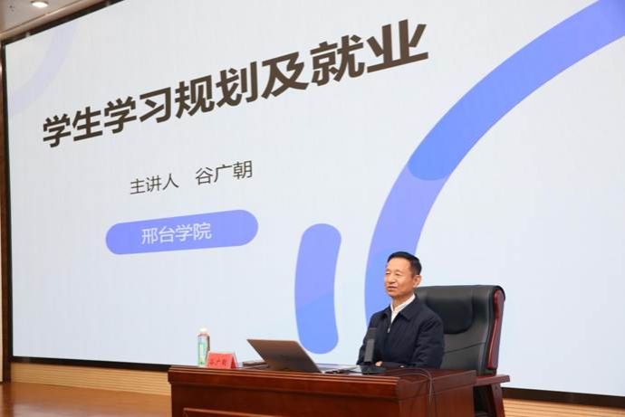 贾云霄表示,谷广朝教授对我校在学科专业建设、应用转型、校政企合作等工作提出了指导性意见和建议,坚定了我校走高水平应用型大学这一办学定位的决心。他指出,青年学生要以理想为“航向标”,在“国之大者”中锚定人生坐标,在服务国家战略中实现人生价值。要以规划为“路线图”,在“知行合一”中锻造实力,让人生规划落地生根。要以态度为“压舱石”,在“勤奋务实”中彰显青春担当,用实际行动为实现中华民族伟大复兴贡献力量。他强调,全校青年学生要坚决摒弃“躺平”思想,振作起来、行动起来、奔跑起来,以时不我待的心态和积极主动的姿态,过好大学生活,积累竞争实力,以远大志向引领人生方向,做有理想、敢担当、能吃苦、肯奋斗的新时代青年,用奋斗书写无悔青春。
