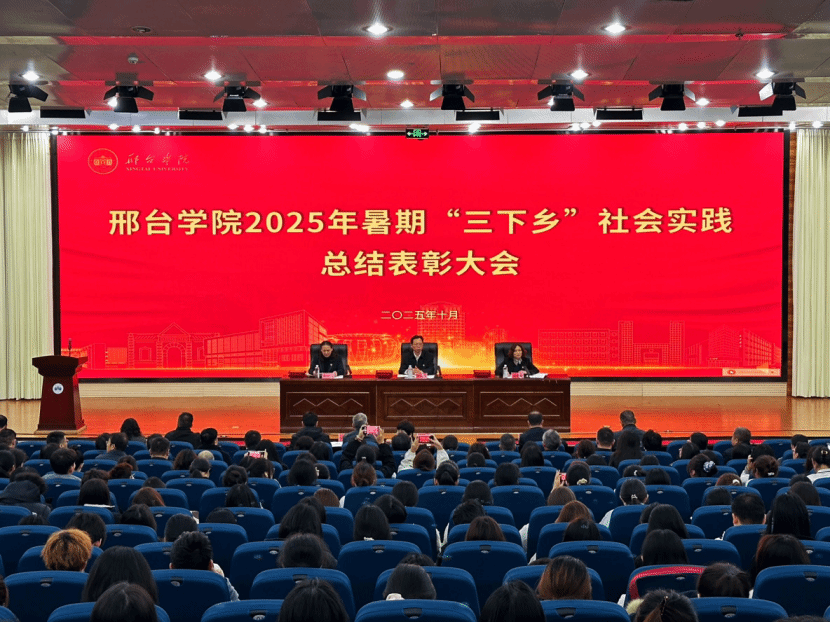 10月24日下午,我校在体育馆学术报告厅隆重召开2025年暑期“三下乡”社会实践总结表彰大会。党委书记贾云霄、党委副书记徐惠敏、副校长张盈利出席大会。邢台市立德小学校长王宁,我校相关职能部门负责人,思政课教师代表,各院(系部)党委书记、副书记,团学干部,社会实践优秀团队代表、先进个人代表、优秀指导教师代表,2025年“青年马克思主义者培养工程”成长班学员等700余人参加会议。徐惠敏主持会议。