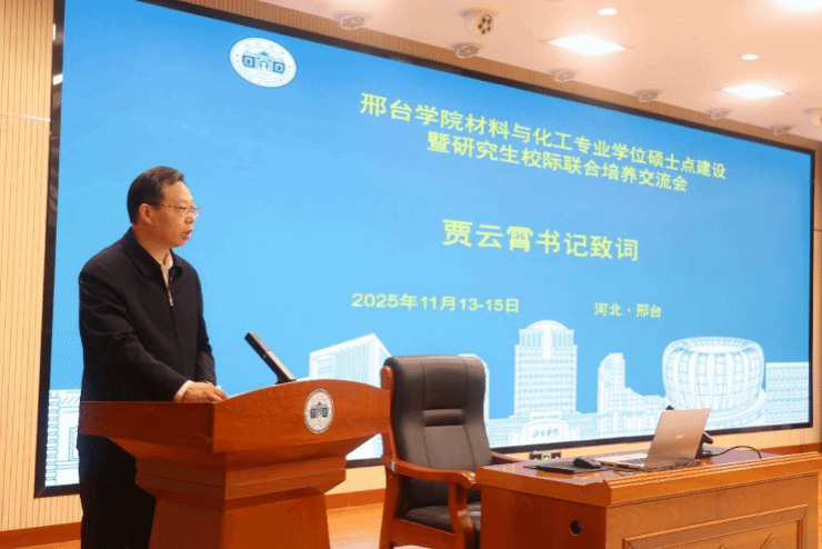 11月13日至15日,我校成功举办“材料与化工专业学位硕士点建设暨研究生校际联合培养交流会”,会议由河北省碳基材料及应用技术创新中心承办。吉林大学高忠民研究员、中国石油大学(北京)巩雁军教授、中国科学院高能物理研究所李志宏研究员、中国科学院上海高等研究院杨春明研究员、河北师范大学马子川教授、河北工程大学复合材料与工程系主任王光硕教授、龙星科技集团股份有限公司副总经理兼首席质量官乔习学、邢台纳科诺尔精轧科技股份有限公司研发总监苑振革出席交流会并作专题报告。校党委书记贾云霄出席交流会并致辞。化学工程与生物技术学院班子成员以及相关职能部门负责人、师生代表共150余人参加交流会。