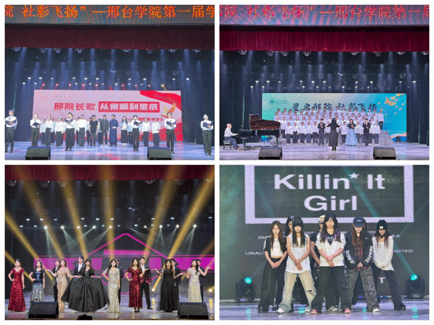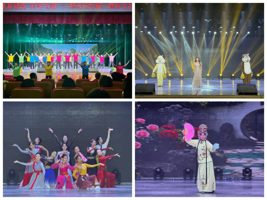 大学生艺术团戏曲社《报花名》以戏曲表演的形式,带领观众领略传统艺术的独特魅力;音乐舞蹈学院、大学生匀动舞社《东北扭秧歌》则以欢快的舞蹈节奏,点燃现场气氛。红烛学社-新师范学社演绎的《altun tataymu》的舞蹈表演,则展现了异域文化的别样风情。青年志愿者协会和音乐舞蹈学院“领航之声”合唱团共同演绎的《小美满》,通过手语舞与合唱的融合展演,以无声的语言传递温暖与力量,成为全场亮点。预立行达职业生涯规划协会、文学院红蓼花读书会、文学院弘毅社团联合表演的《逆光白》以“独唱+伴舞”的形式,引发强烈共鸣;星空英语社的《Try Everything》节奏轻快又活泼,广播站、校团委学生会《邢院青年说》展现了新时代青年的担当与作为。百泉之声大学生合唱团演唱的《歌唱祖国》将活动推向高潮,在激昂的旋律中,家国情怀与青春梦想交织升华,为整场演出画上圆满句号。
