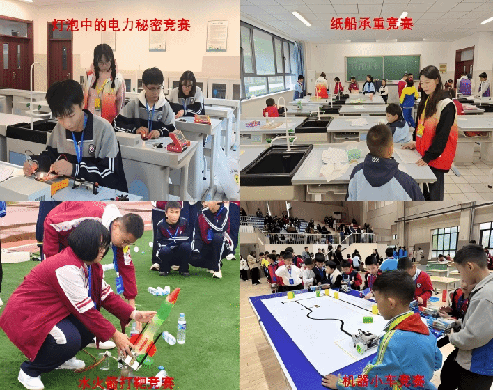 本次活动以搭建青少年科学实践平台、推动科学教育与竞技体验深度融合为目标,设置“物理电学”、“牛顿的秋千”“纸船承重”、“航空航天”及 “机器小车” 等项目。期间,科学教育专业学生不仅承担裁判、协调等工作,更在赛后发挥专业特长,为选手讲解欧姆定律、力学、空气动力学等原理,指导参赛选手优化电路、飞行器结构设计等,既帮助中小学生理解科学知识、激发科学兴趣、培养团队协作能力,也让自身专业知识深化、提升教学与应用能力。