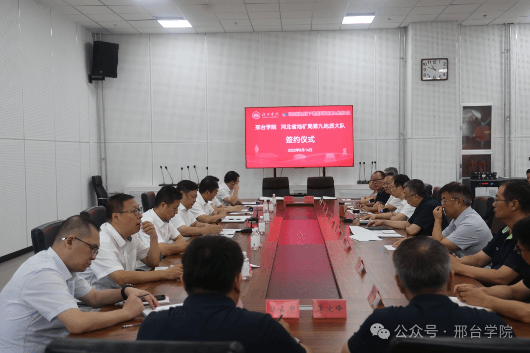贾云霄表示,邢台学院有着悠久的办学历史,文化底蕴深厚,办学基础扎实,办学特色明显。近年来,我校坚持“一三六九”整体工作思路,围绕建设新时代高水平应用型大学目标定位,以“小规模、高水平、有特色”的办学思路,积极服务地方经济社会发展,取得了显著效果。河北省地矿局第九地质大队在地质勘探、资源调查等领域优势明显、成果卓著,为地方经济社会发展提供了坚实的地质支撑。希望双方发挥自身优势,在资源环境、水生态环境、地理信息、科普教育、“邢白瓷”材料研究、“太行岩彩”推广应用等多领域全方位合作,为奋力谱写中国式现代化建设河北篇章贡献力量。