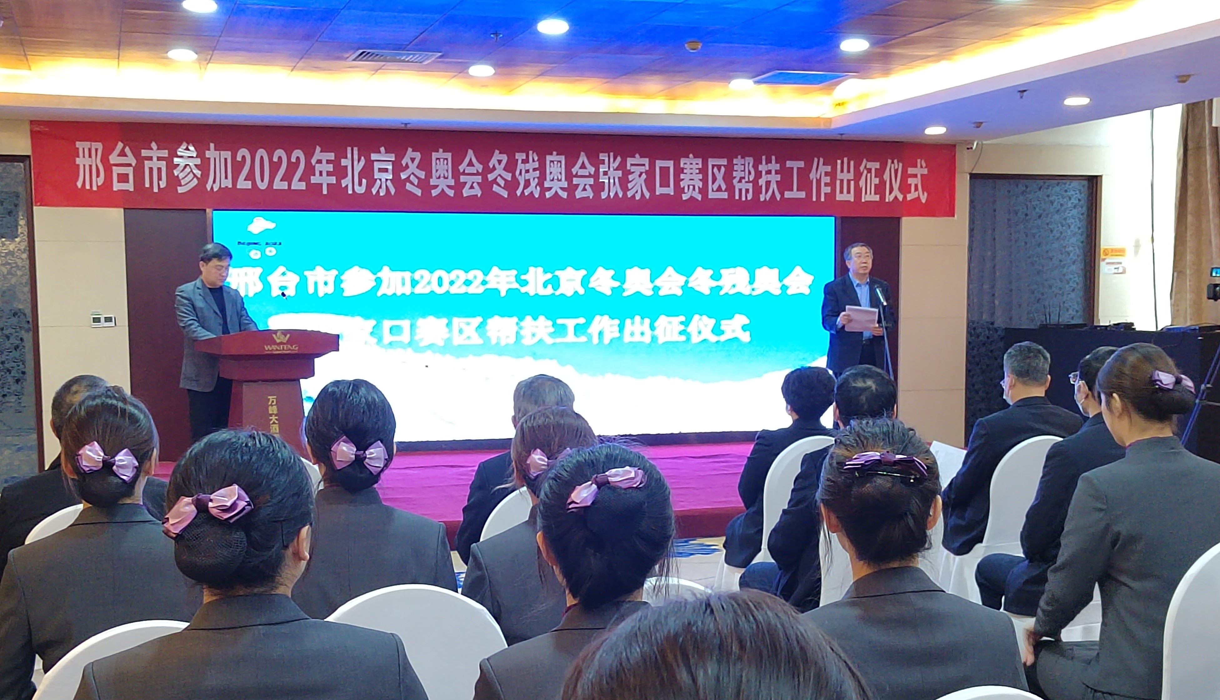 2022年1月4日,邢台市2022北京冬奥会冬残奥会张家口赛区帮扶工作出征仪式在万峰大酒店隆重举行。我校5名同学宣誓后出征张家口赛区。蔡振禹校长应邀出席了出征仪式,并代表参与此项工作的高校发表讲话。