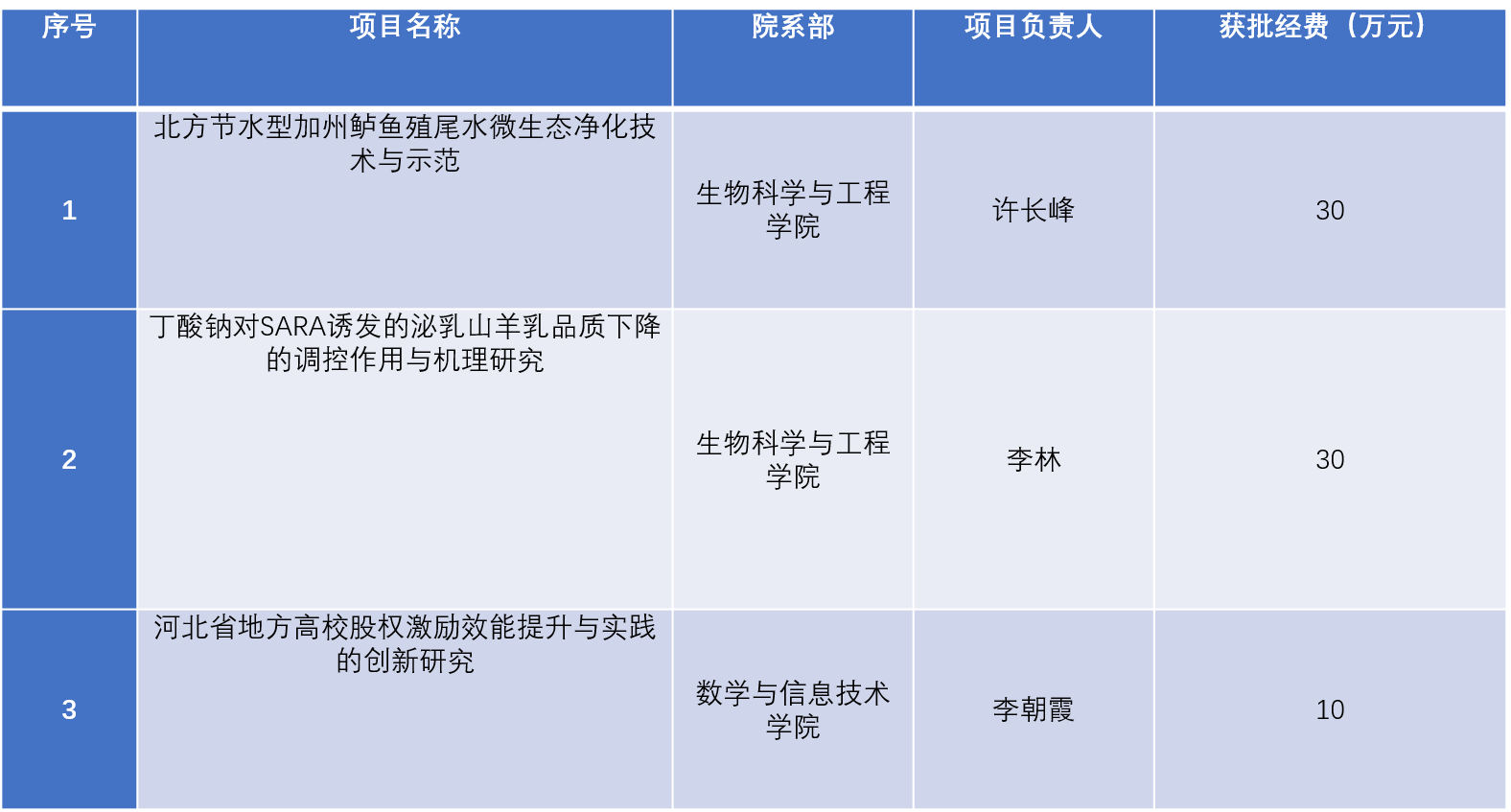 近日,河北省科技厅发布了2022年度省级科技计划项目立项通告,我校共有3个项目获批立项,获批项目经费共70万元。