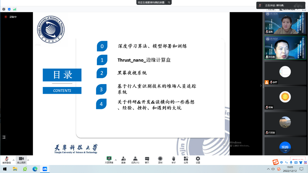12月12日,天津科技大学郭肖勇博士以“深度学习和边缘计算领域内的科研和产品开发”...