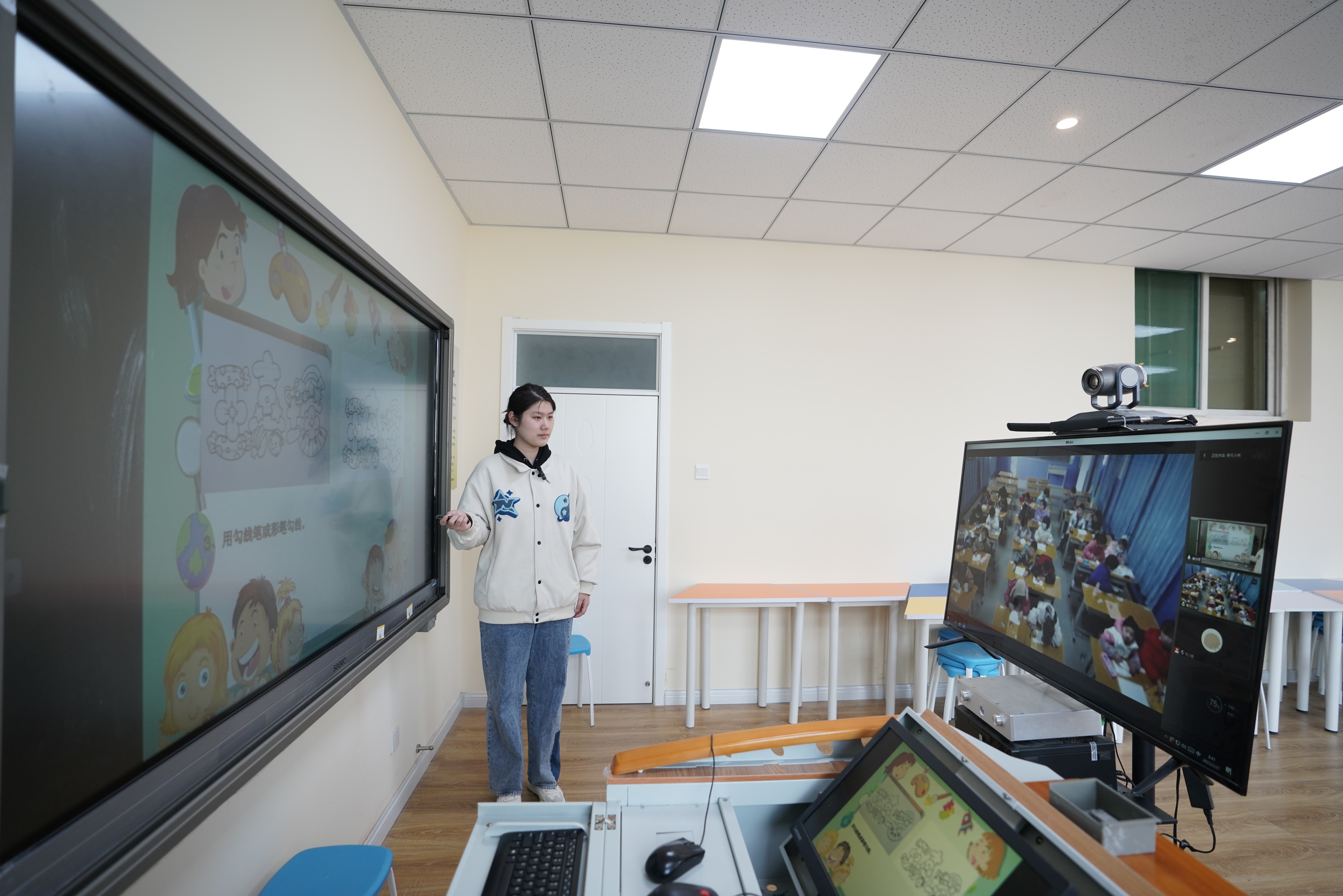 2023年2月27日上午8时,随着上课铃声响起,邢台学院“云上美丽乡村学校”双师课堂开讲了。借助智慧教学平台,邢台学院美术与设计学院的师范生和枣园小学的学生在空中课堂见面,开启了一场别开生面、奇妙无穷的美术探索之旅。