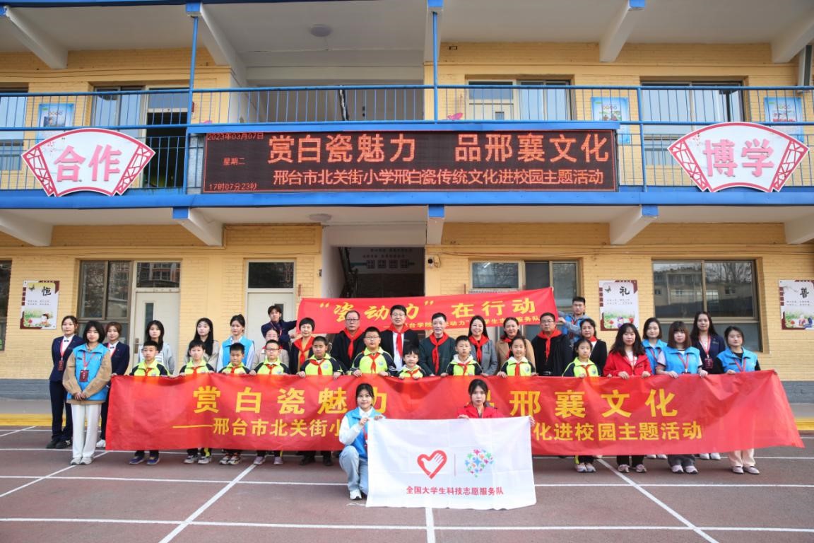 3月7日,我校师生来到邢台市北关街小学开展邢白瓷文化校园宣讲和技艺传承活动,国家级非遗传承人张志忠老师和我校“瓷动力”邢白瓷志愿服务队全体成员以及北关街小学460名师生参加了活动。