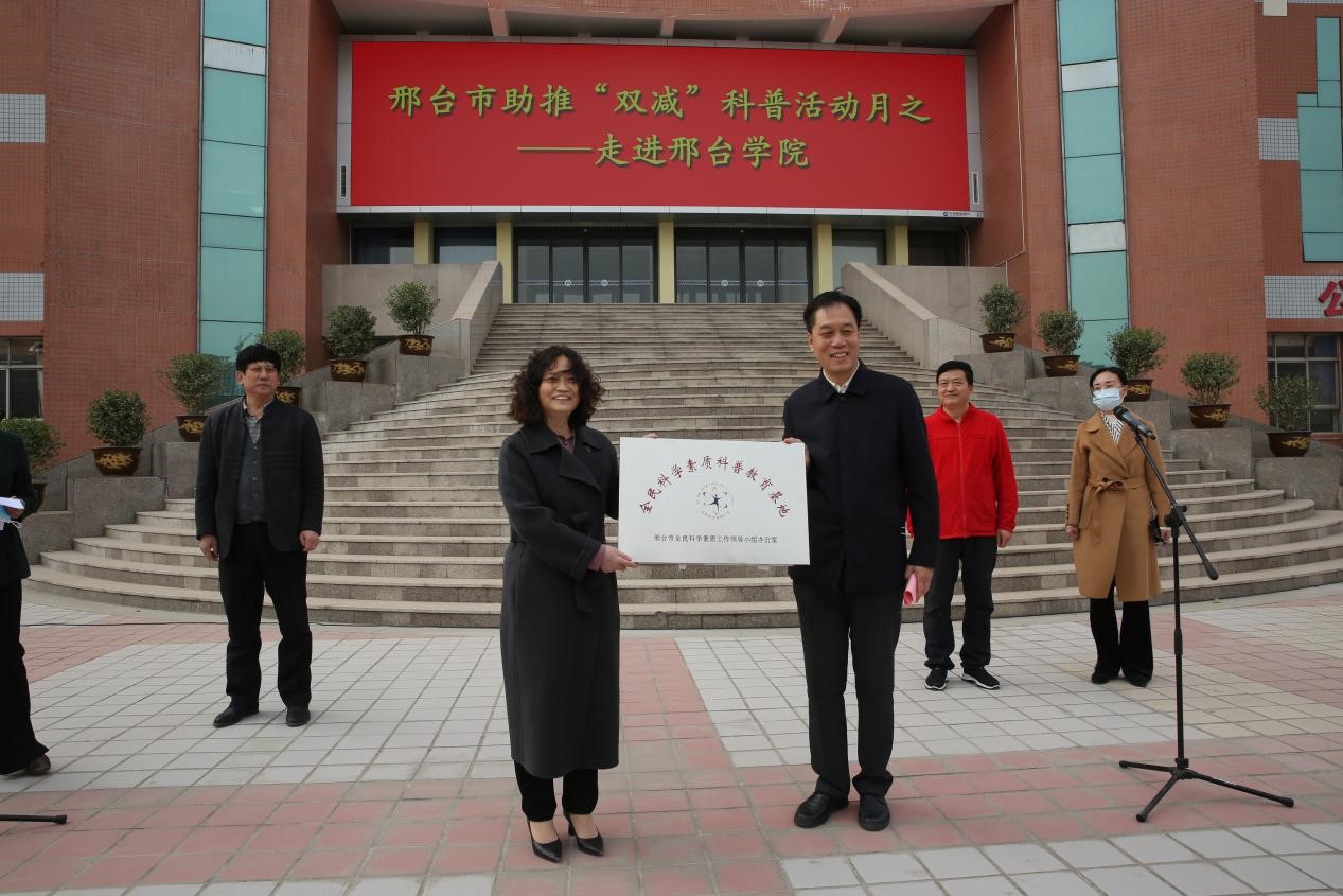 为全面贯彻党的二十大精神,深入实施全民科学素质提升工程,3月25日上午,由邢台市科学技术协会和邢台学院联合举办的邢台市助推“双减”科普活动月在邢台学院举办启动仪式。市科协党组书记、主席王俊国,邢台学院党委常委、副校长徐惠敏出席并致辞;市科技馆馆长杨少田、市科协科普部部长耿晓娜出席启动仪式。启动仪式由市科协副主席冀淑秀主持,来自东关逸夫小学的老师、学生和家长共200余人参加了仪式和科普活动。仪式上,邢台市科协向邢台学院授牌“...