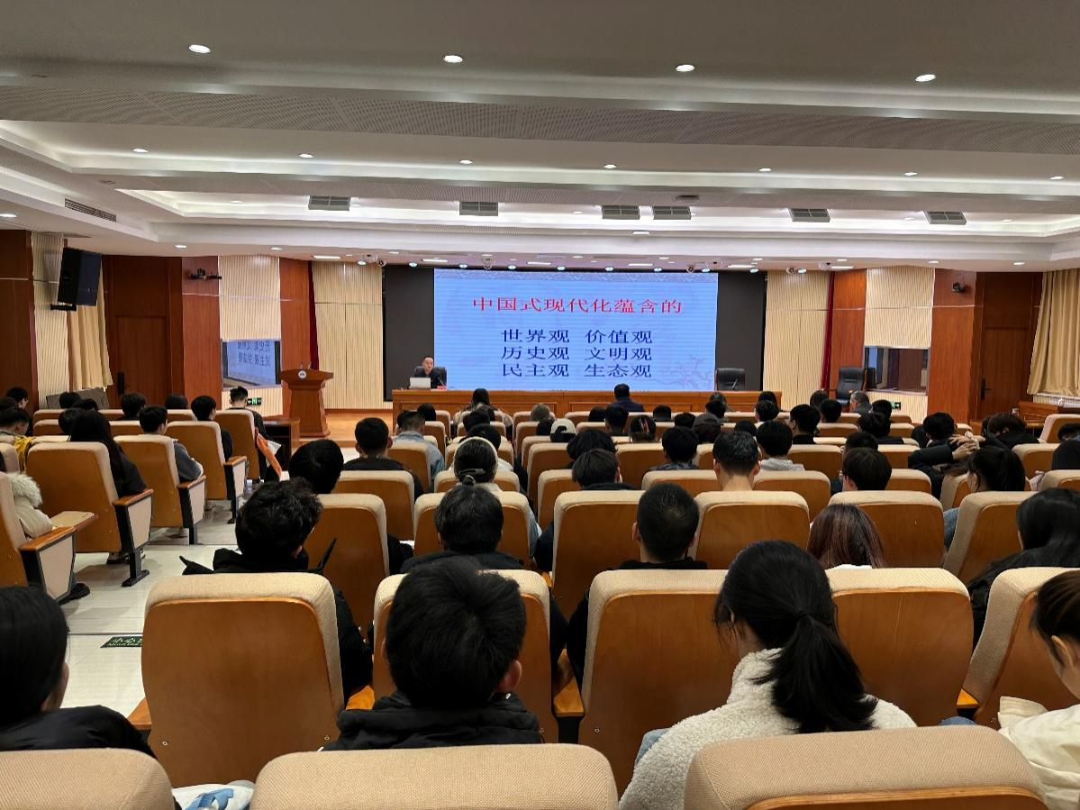 按照校党委主题教育的工作部署,11月16日,校党委副书记朱金亮以“中国式现代化蕴含的世界观、价值观、历史观、文明观、民主观、生态观”为题讲授专题党课,物理与电子工程学院和法政学院的辅导员、学生党员、入党积极分子现场聆听。