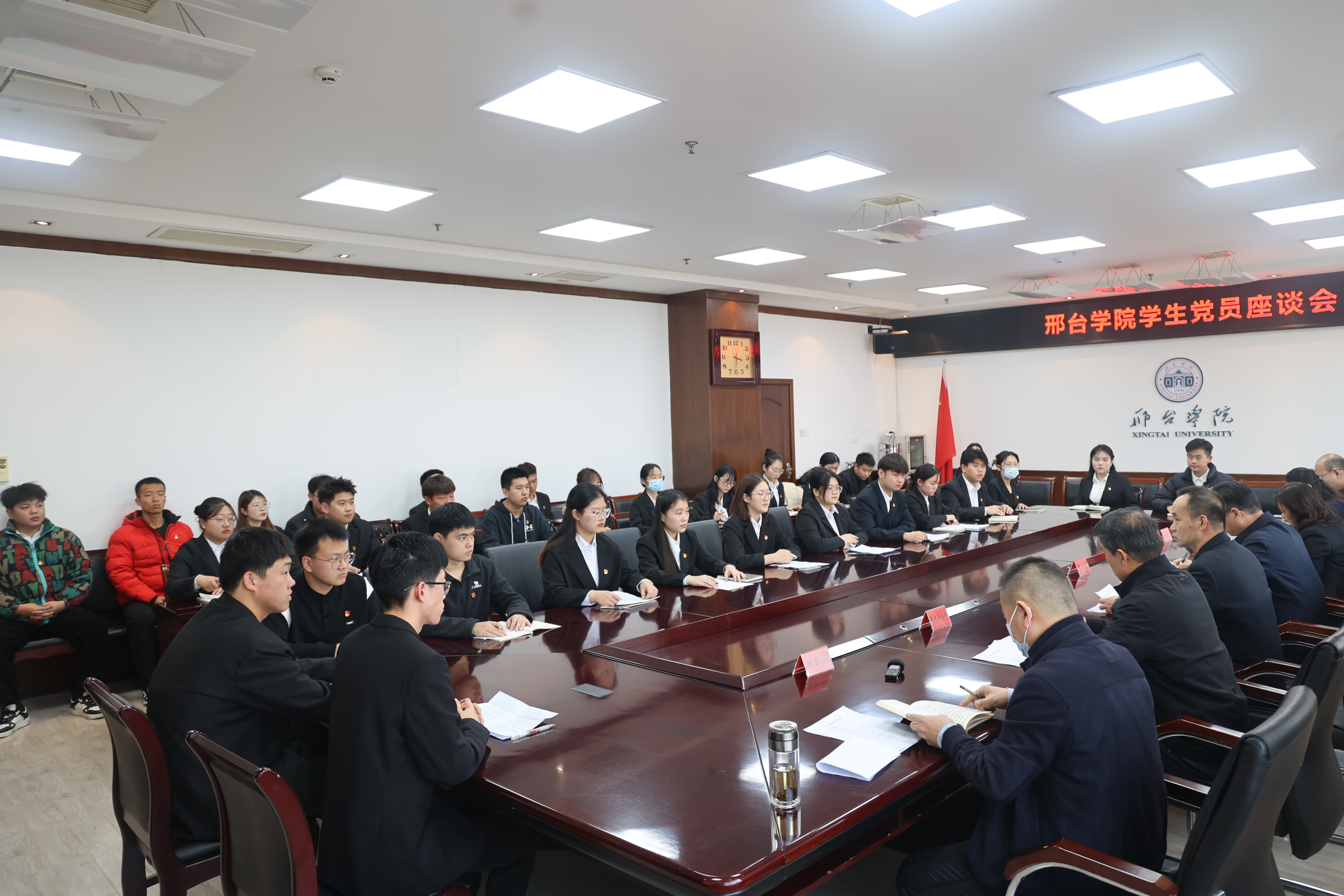 在我校深入开展学习贯彻习近平新时代中国特色社会主义思想主题教育之际,12月5日,党委书记贾云霄出席学生党员座谈会,与来自18个院(系部)的30名学生党员代表交流思想、沟通情况,听取大家在主题教育、学校建设发展和学习生活等方面的意见和建议。座谈会由党委副书记朱金亮主持,副校长徐惠敏参加会议。