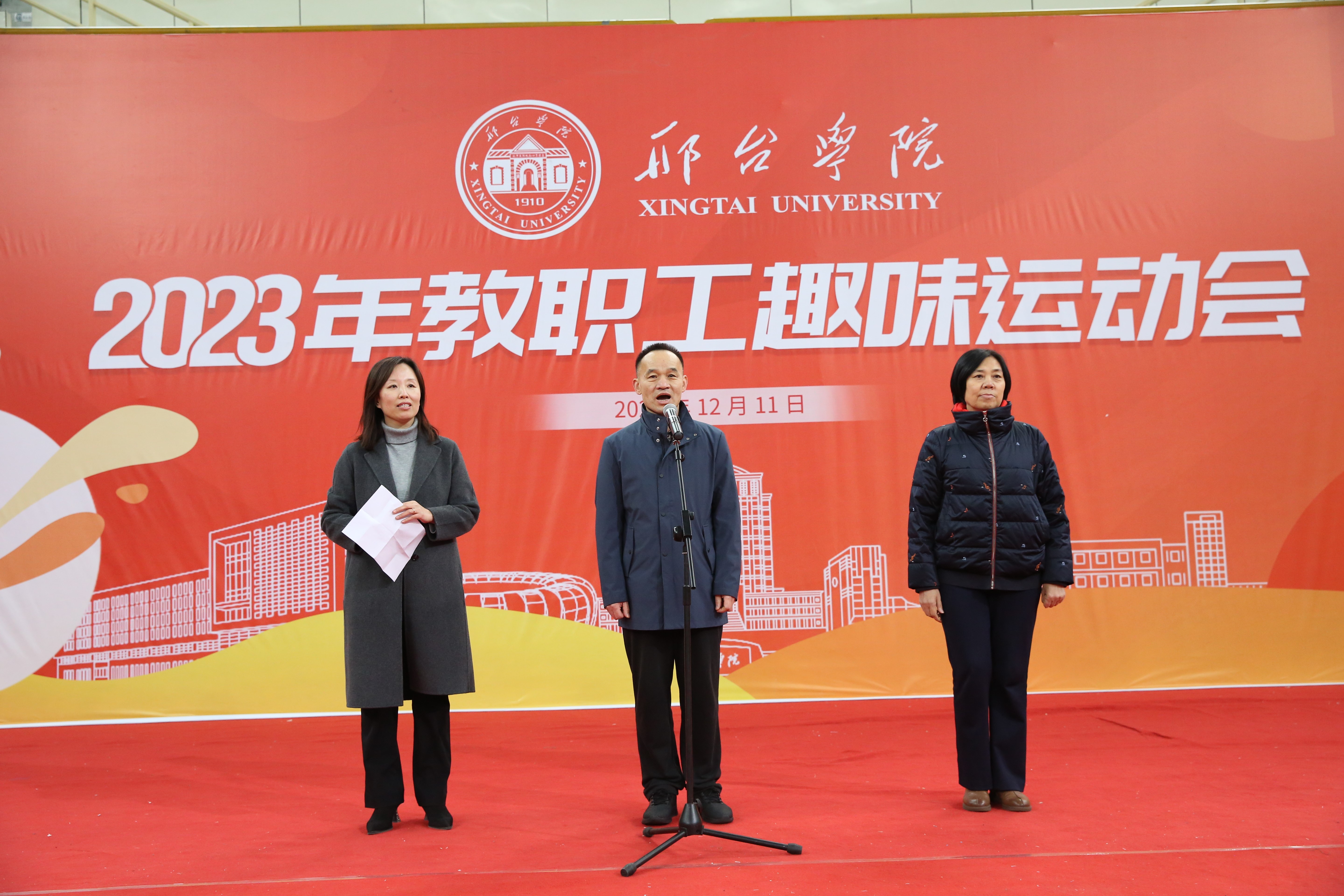 为扎实推进邢台市“四型机关建设”,丰富教职工精神文化生活,打造全员参与、朝气蓬勃、充满活力、奋发进取的校园文化氛围,12月11日下午,我校在体育馆举办了2023年教职工趣味运动会。校党委副书记朱金亮出席开幕会并致辞。全校25个分工会共选派162支代表队,839人次参赛。
