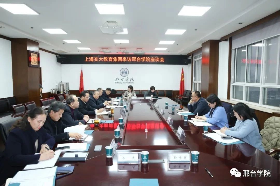 12月27日下午,上海交大教育集团总裁王永辉一行到访我校,双方就相关合作事项展开交流座谈。上海交大教育集团总裁助理夏辉、商务总监罗军、河北省驻京机构“双招双引”领导小组副组长原一级巡视员王进军,我校党委书记贾云霄、校长蔡振禹、副校长王自力、副校长肖士恩出席座谈会。