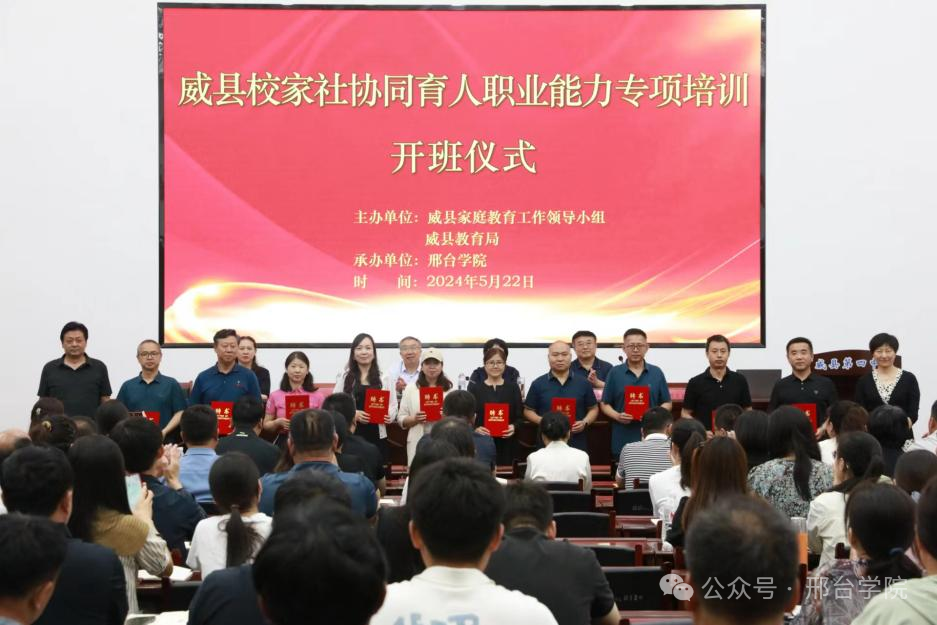 为助推威县校家社协同育人特色学校建设,深化威县教育协同提质行动成效,实现校家社协同育人新格局,5月22日,“威县校家社协同育人职业能力专项培训班”在威县四中正式举行。邢台学院校长、邢台市家庭教育学院院长蔡振禹,校办主任雷宏谦,宣传部部长张盈利,家庭教育研究院执行院长、邢台市家庭教育学院常务副院长刘志涛,威县政府副县长石慧敏,县教育局局长张延峰出席开班仪式,培训班为期三天。教育部挂职副县长高云主持开班仪式。...