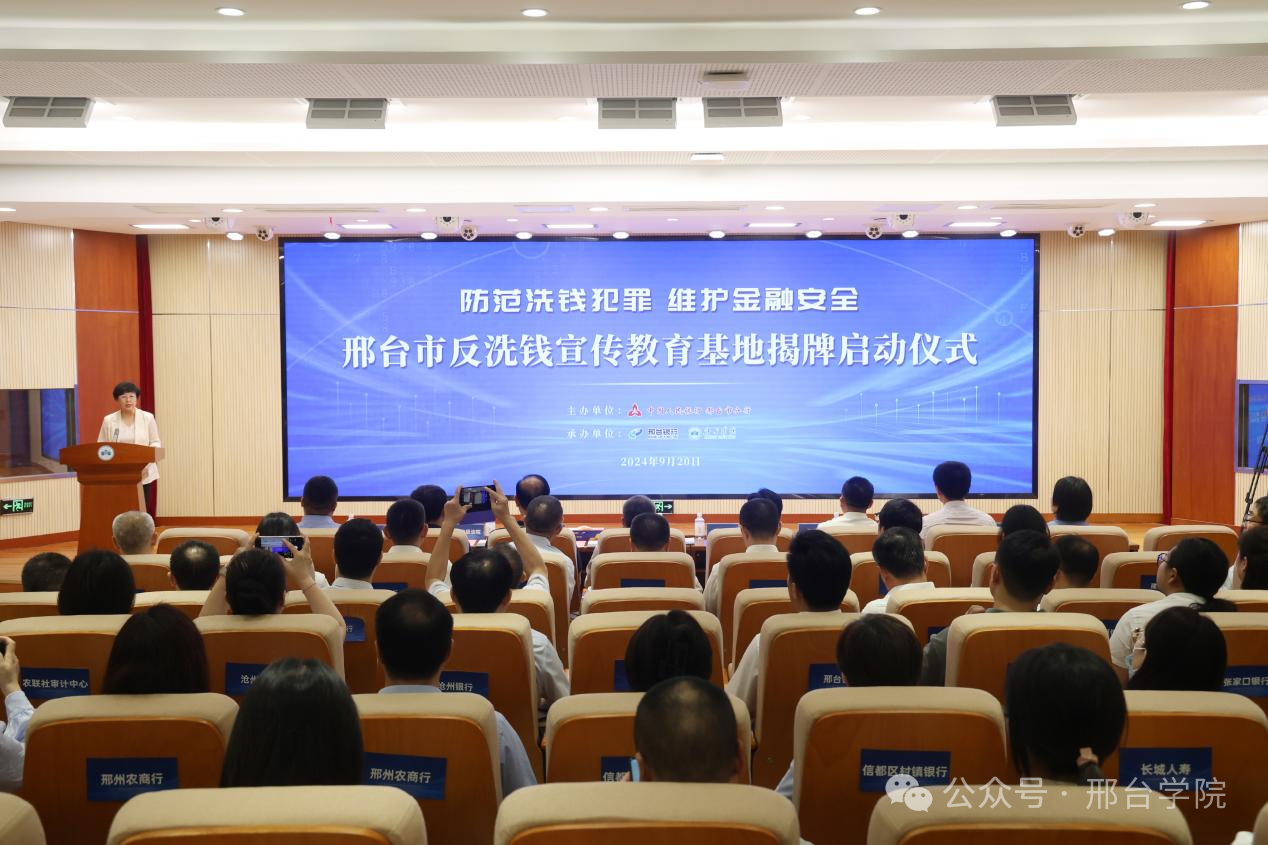 9月20日上午,邢台市反洗钱宣传教育基地揭牌启动仪式在我校图书馆报告厅举行。校长蔡振禹、中国人民银行河北省分行反洗钱处副处长谢建时、中国人民银行邢台市分行行长郭彦峰及邢台银行行长吕文联出席活动,邢台市辖区内100余家金融机构相关业务负责人和学校师生代表参加活动。中国人民银行邢台市分行副行长韩淑平主持仪式。