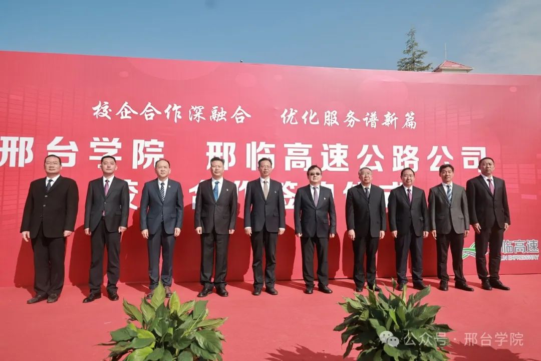 为响应国家产教融合、校企合作的号召,充分发挥学校与企业双方优势,进一步深化学校服务地方经济社会的职能,10月22日上午,我校与河北邢临高速公路开发有限公司校企合作签约仪式在邢临公司举行。邢台学院党委书记贾云霄、校长蔡振禹、副校长王自力,邢临公司党委书记、总经理陈复胜,副总经理侯向东,工会主席田增泉等领导出席仪式。