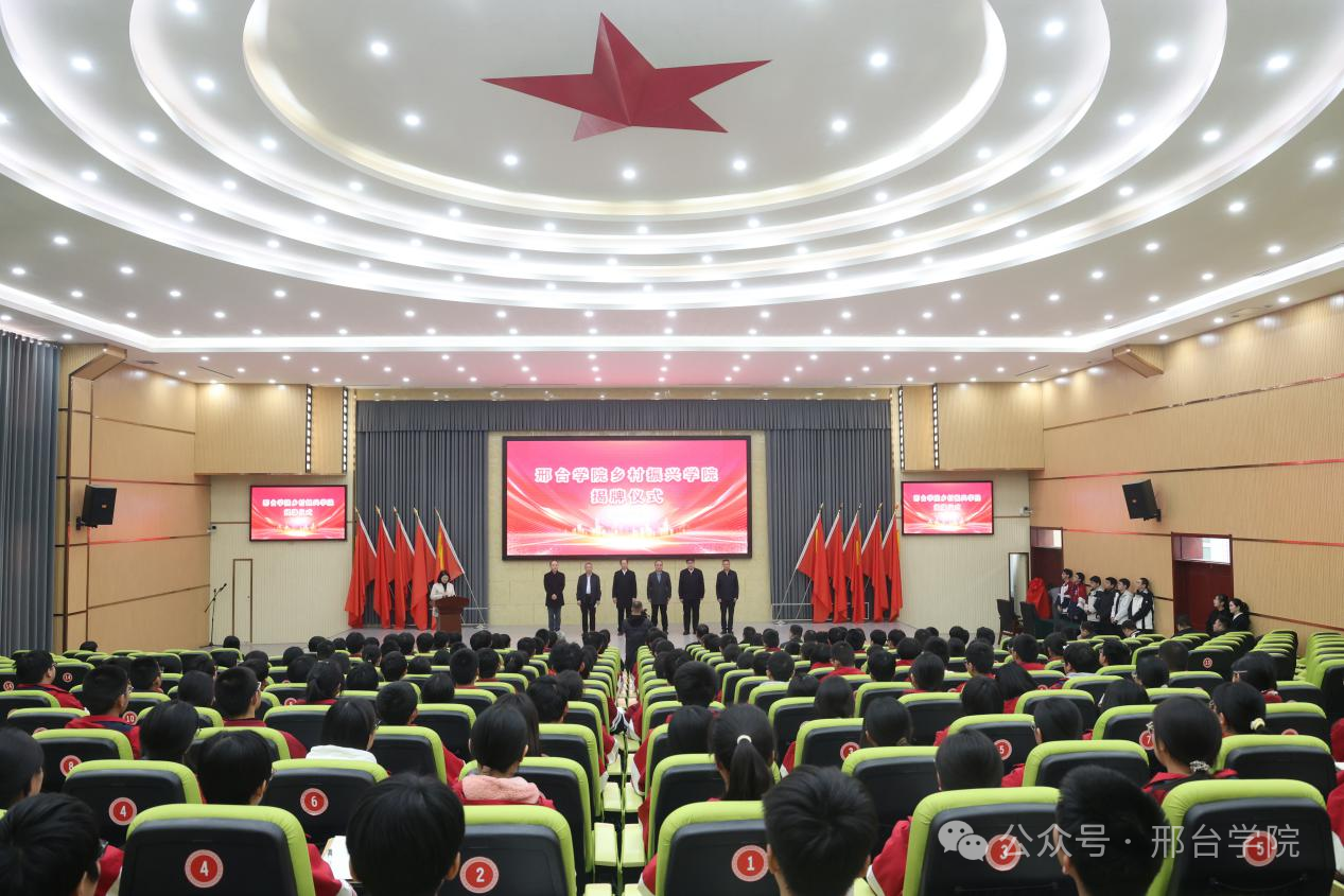 邢台学院党委书记贾云霄、宁晋县委副书记杨晓明为邢台学院乡村振兴学院揭牌,校长蔡振禹致辞,副校长王自力与宁晋县委常委、组织部长孙晓磊代表双方签署合作协议。