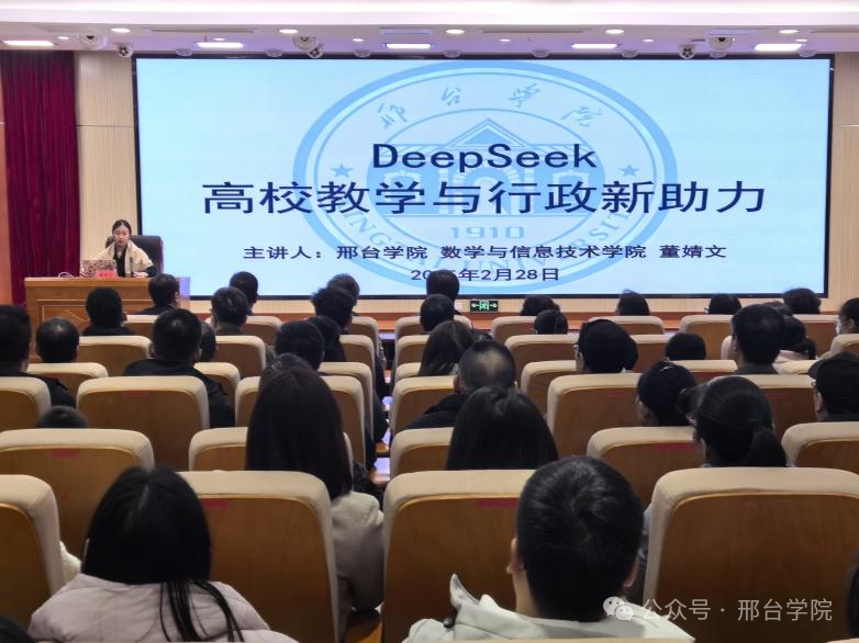 2月28日下午,由校工会、人事处、教务处、数学与信息技术学院联合举办的教职工DeepSeek高校使用培训讲座在图书馆学术报告厅举行,数学与信息技术学院教师董婧文以“DeepSeek高校教学与行政新助力”为题给教职工做专题培训。校党委副书记徐惠敏出席,各二级学院(系部)、各职能部门200余名教职工参加培训。