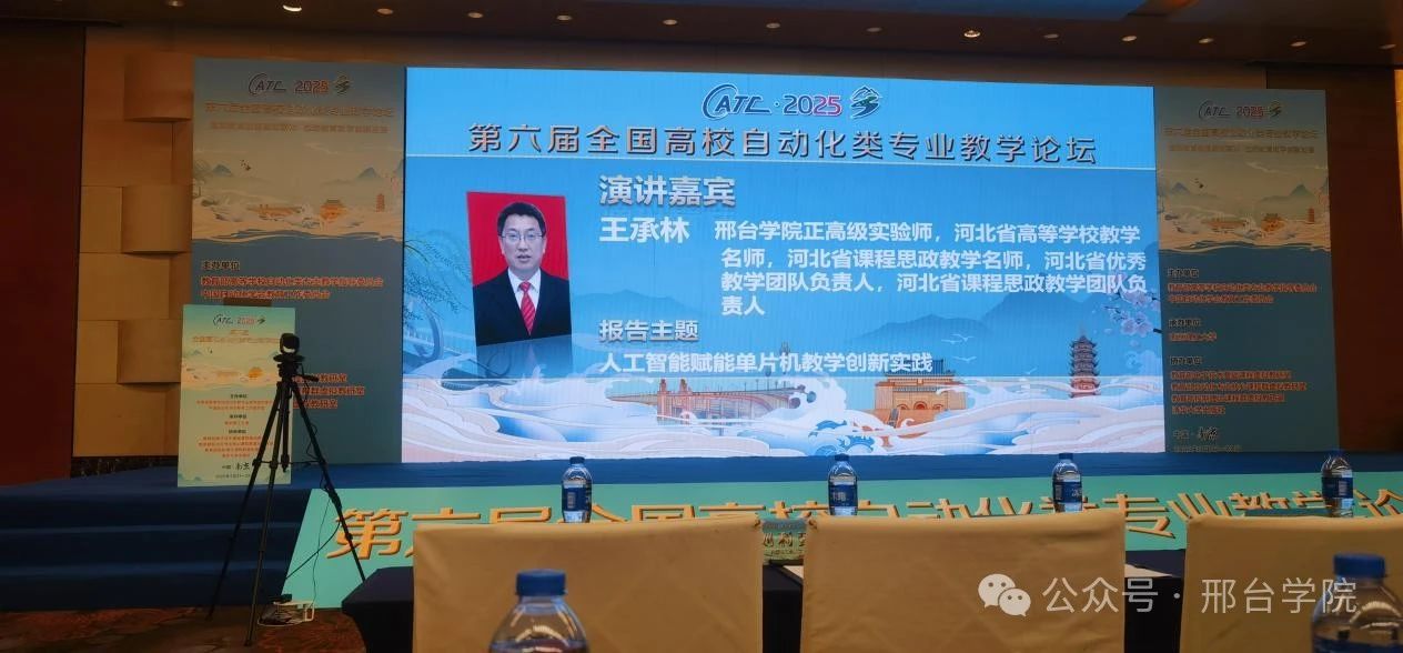 3月21—23 日,由教育部高等学校自动化类专业教学指导委员会、中国自动化学会教育工作委员会联合主办,南京理工大学承办的第六届全国高校自动化类专业教学论坛在南京隆重召开。我校物理与电子工程学院王承林老师受邀作题为《人工智能赋能单片机教学创新实践——从虚拟仿真到数字人教学的多维融合》的专题报告,分享国家级线下一流课程“单片机原理及应用”的建设成果,引发与会专家热烈讨论。