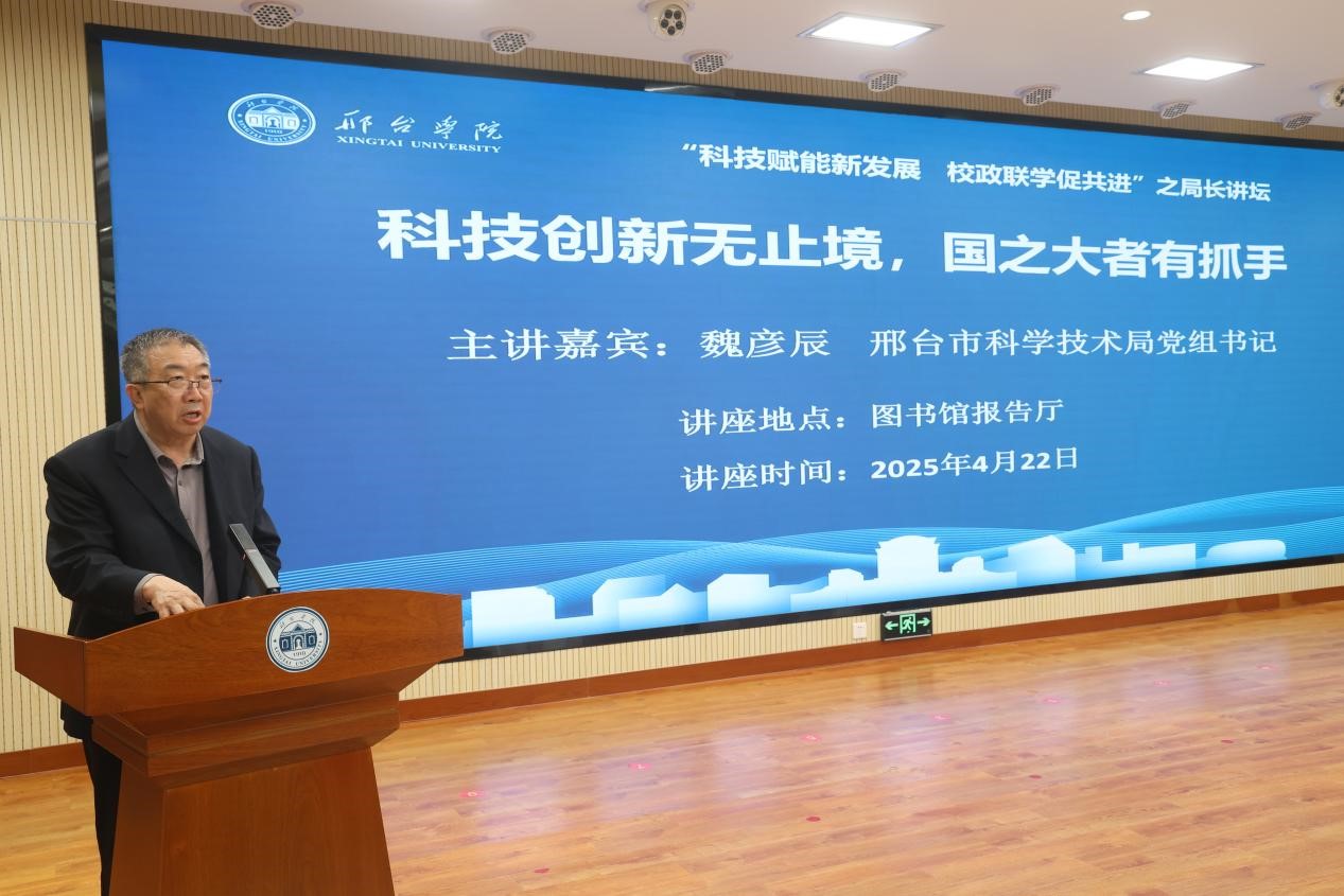 为深入贯彻落实党的二十大和二十届二中、三中全会精神,统筹推进教育、科技、人才一体化改革发展,4月22日,我校与邢台市科技局在图书馆报告厅联合开展“科技赋能新发展,校政联学促共进”主题党日活动。邢台市科技局党组书记魏彦辰,副局长郭帅军、李文彬、曹欣敏,三级调研员王志强,我校校长蔡振禹、党委副书记徐惠敏出席活动。邢台市科技局相关科室负责人,我校相关部门、各院系(部)负责人及师生代表参加。活动由校长蔡振禹主持。...