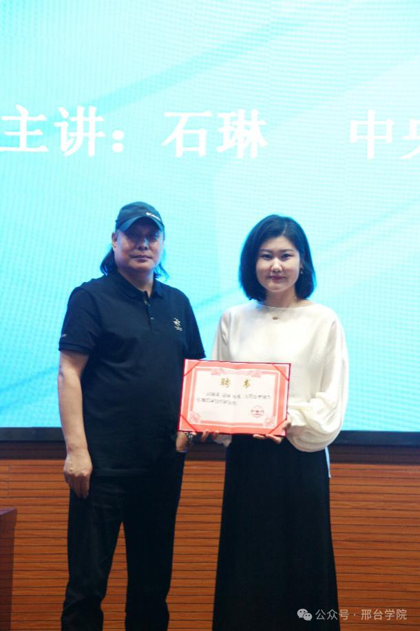 音乐舞蹈学院院长刘兴武对石琳教授的到来表示热烈欢迎和衷心感谢,并为石琳教授颁发“特聘教授”证书。