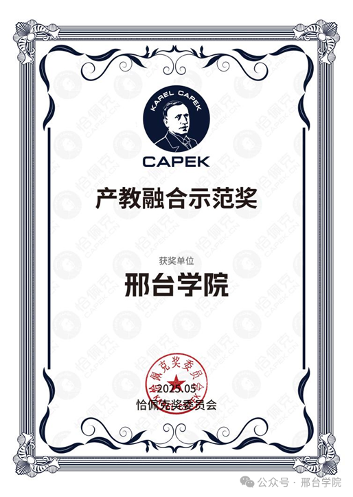 近日,第十五届中国国际机器人高峰论坛暨第十一届恰佩克奖颁奖仪式在安徽芜湖隆重举行。本届活动由中国机电一体化应用协会和芜湖市政府联合主办,600余家国内外机器人产业链企业、高校及科研机构参加本次活动。我校凭借在产教融合与人才培养领域的创新成果,从激烈竞争中脱颖而出,荣获“产教融合示范奖”称号。