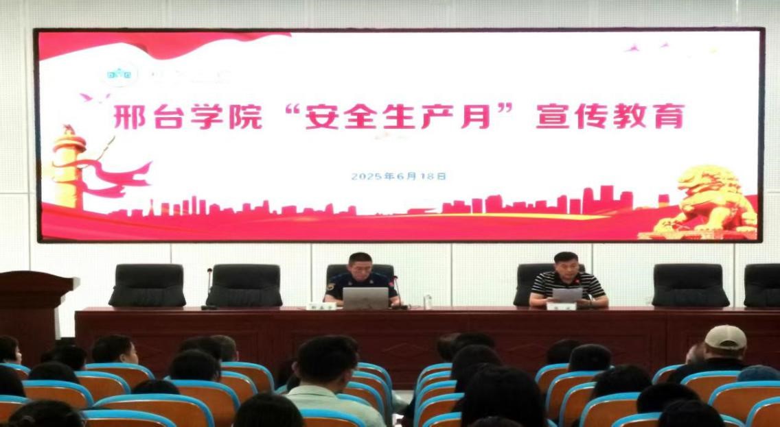 “安全生产月”主题宣讲报告会上,邢台市消防救援支队法制与社会消防工作科靳森宇以“守住消防责任红线 建设和谐平安校园”为主题作宣传教育报告。...