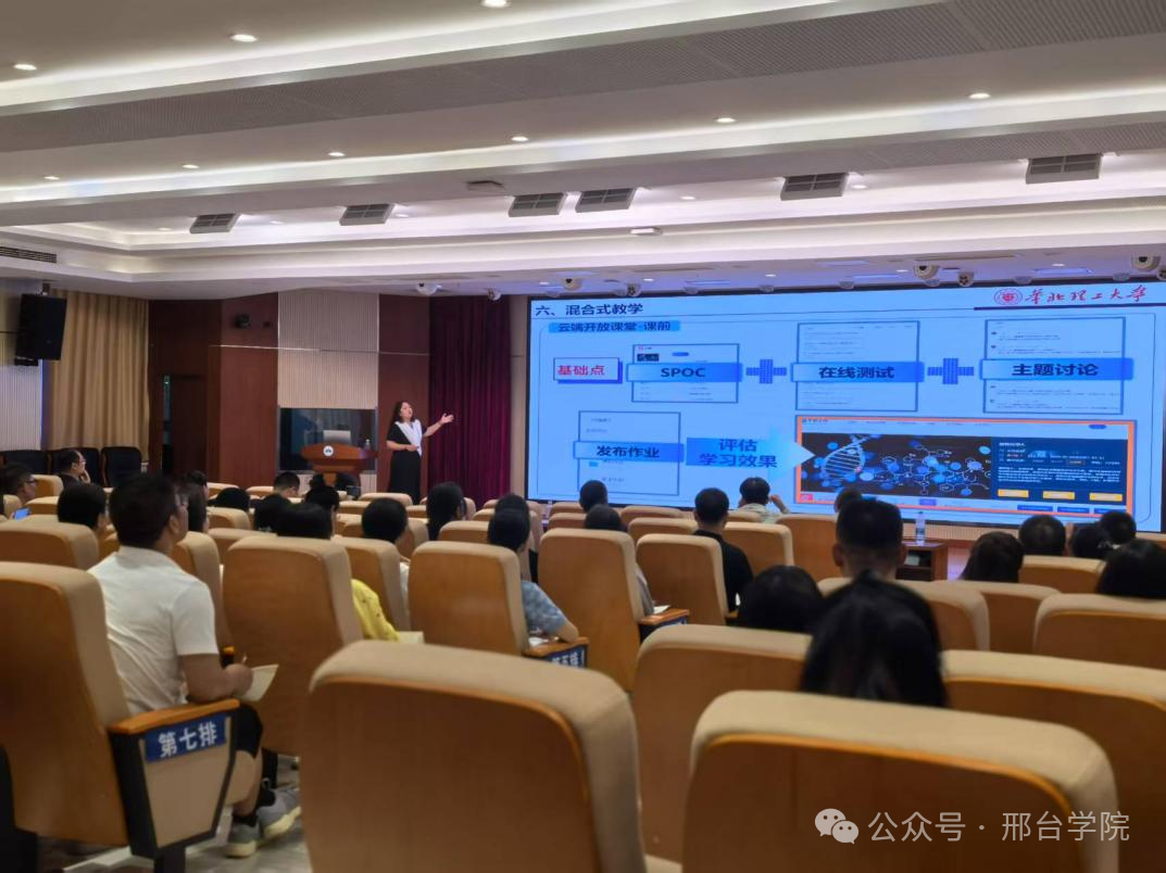 为深入贯彻国家教育数字化战略,进一步推动信息技术与教育教学深度融合,不断提升教师数字化教学能力,7月4日下午,我校在图书馆报告厅举办智慧课程建设专题培训会。培训会特邀华北理工大学生命科学学院副院长曹蕾教授作了题为“智链生化,图谱领航:AI重塑教学场景的创新路径探索”专题培训,全校150余名教师参加培训。