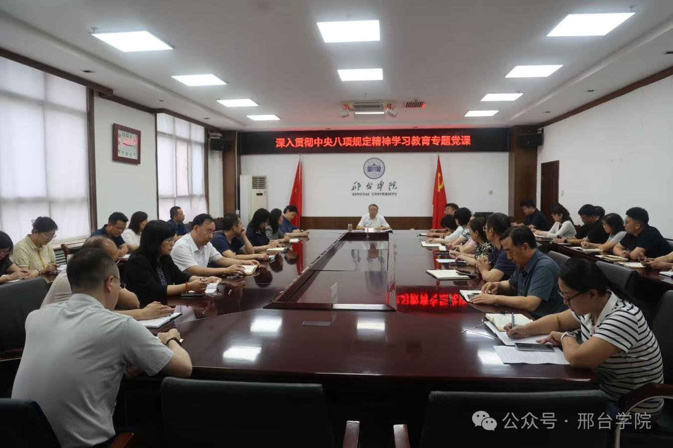 在中国共产党成立104周年之际,为扎实推进深入贯彻中央八项规定精神学习教育走深走实,7月1日上午,校长蔡振禹以《深学细悟铸魂 正风肃纪赋能 以过硬作风谱写邢台学院高质量发展新篇章》为题讲主题党课。