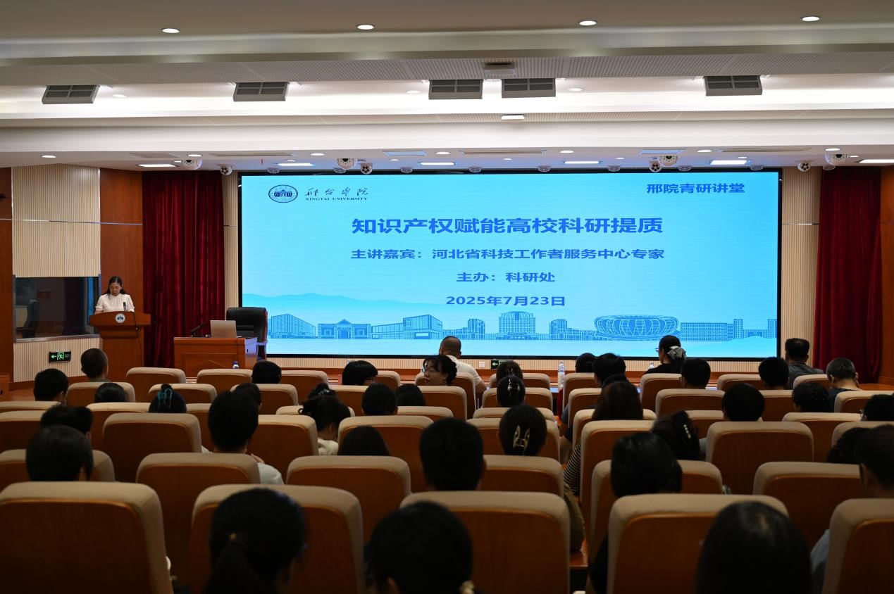 7月23日上午,由科研处主办的 “邢院青研讲堂” 之 “知识产权赋能高校科研提质”专题讲座在图书馆学术报告厅顺利举行。本次讲座邀请到河北省科技工作者服务中心部长孙华辉,石家庄科诚专利事务所技术总监刘兰芳、市场总监严晓晓,邢台市科协党组成员吴丽丽等嘉宾出席。校长助理、化学工程与生物技术学院院长赵宝华、各二级学院主管科研副院长及骨干教师约120人参加专题讲座。科研处董丽丽主持专题讲座。
