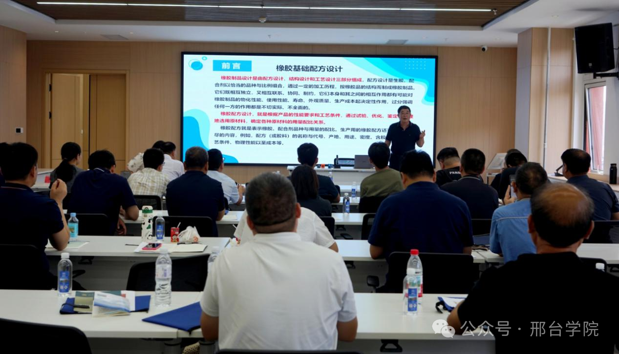 7月24日,邢台橡胶技术高级培训班在我校创新创业中心成功举办。这是我校首次开展以服务我市橡胶产业的专项培训。本次培训班由邢台市总工会、邢台学院工会、邢台新材料工匠学院、我校省级科研平台—河北省功能高分子材料研发与工程应用技术创新中心共同主办。河北华密新材料科技股份有限公司、龙星科技集团股份有限公司、河北中达集团有限责任公司等16家橡胶生产企业的40 余名技术骨干参加培训。