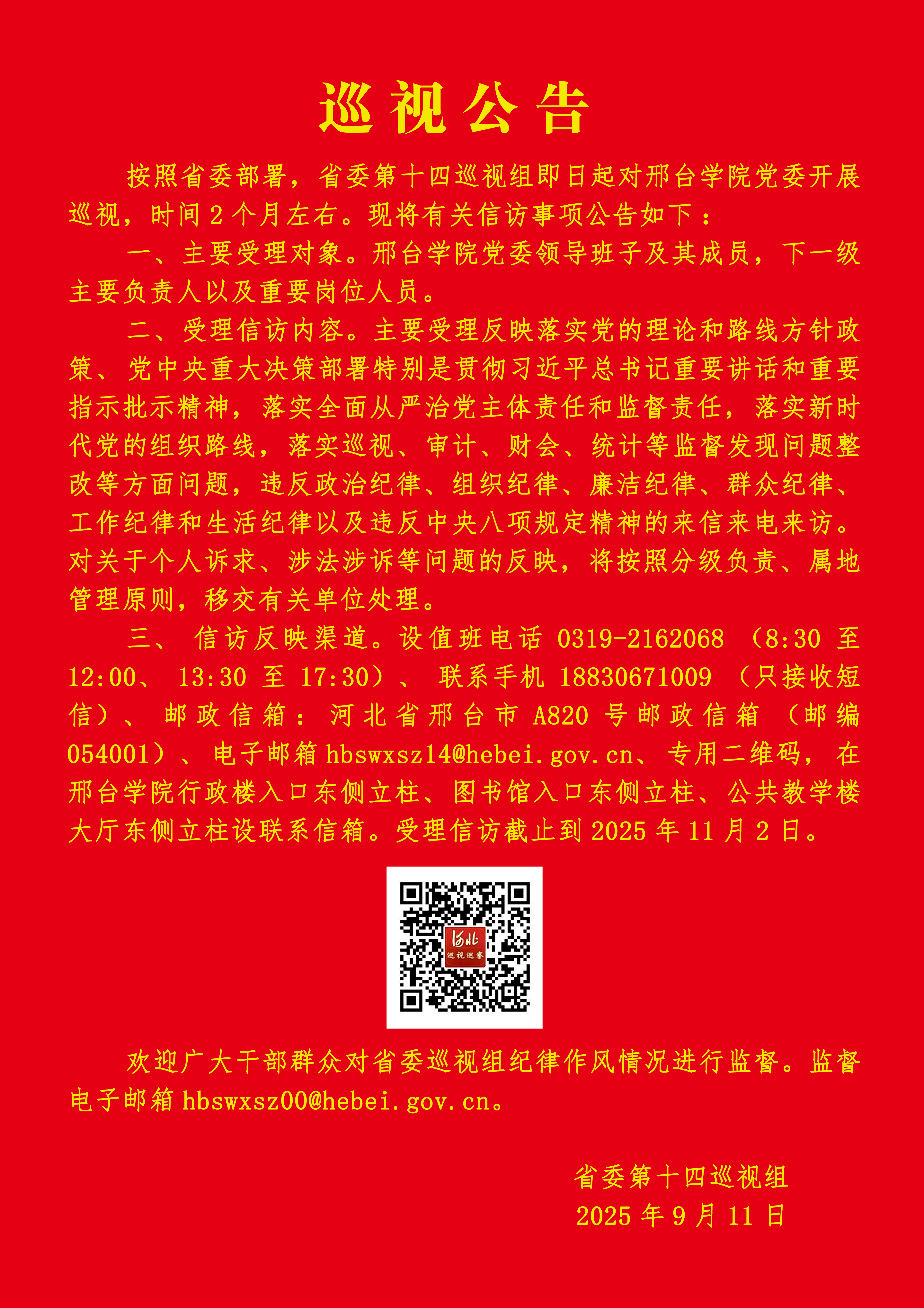 省委第十四巡视组巡视邢台学院党委工作动员会召开
